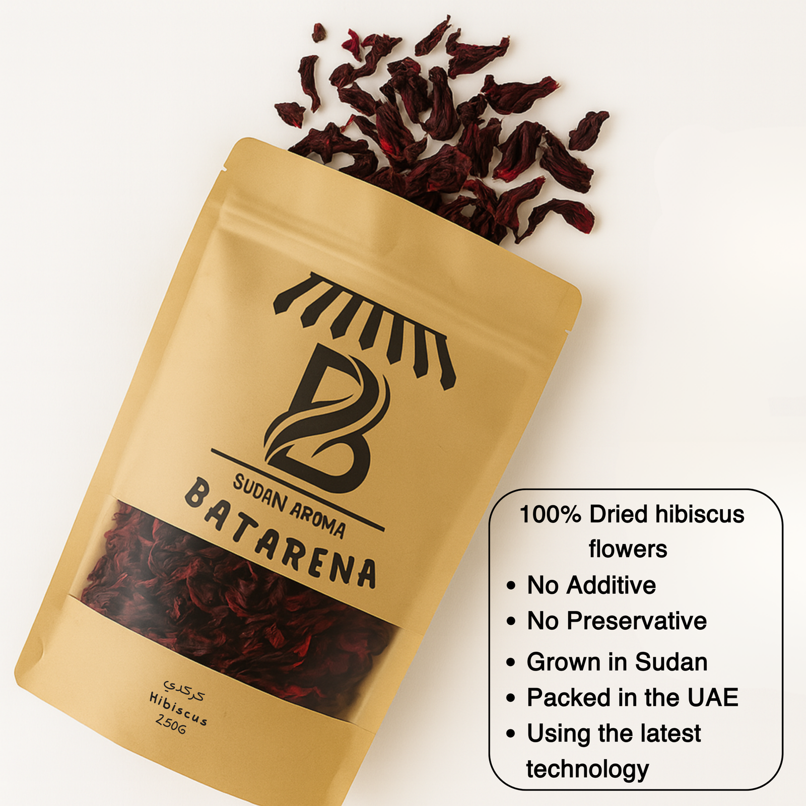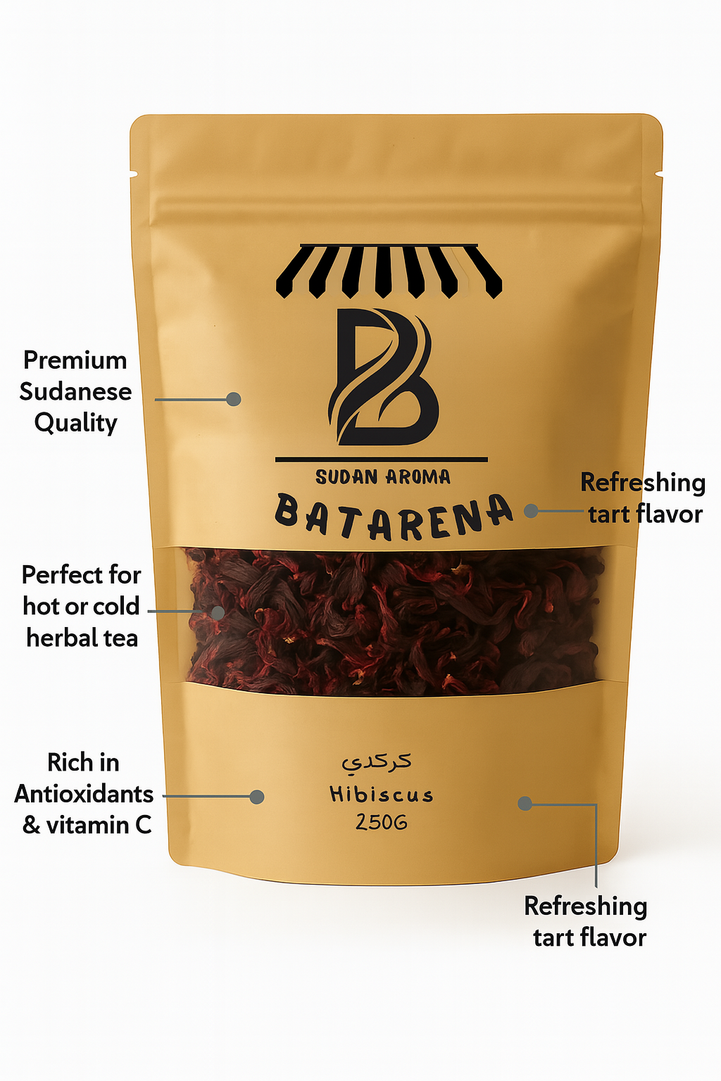 استمتع بمذاق طبيعي غني مع كركديه سوداني فاخر من بترينا، مجفف بعناية للحفاظ على لونه الأحمر العميق ونكهته المميزة.